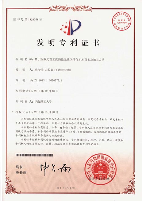 雷佳團(tuán)隊(duì)共申請(qǐng)了SLM金屬3D打印設(shè)備核心專利350余項(xiàng),授權(quán)發(fā)明專利78項(xiàng)(中國、美國、德國), 授權(quán)實(shí)用新型、外觀專利、軟件著作權(quán)等214項(xiàng)。