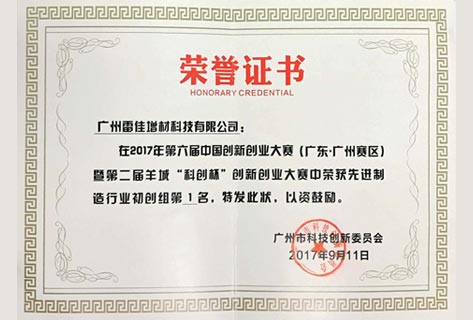 The 1st place of the 6th China Innovation and Entrepreneurship Competition Guangzhou division in 2017