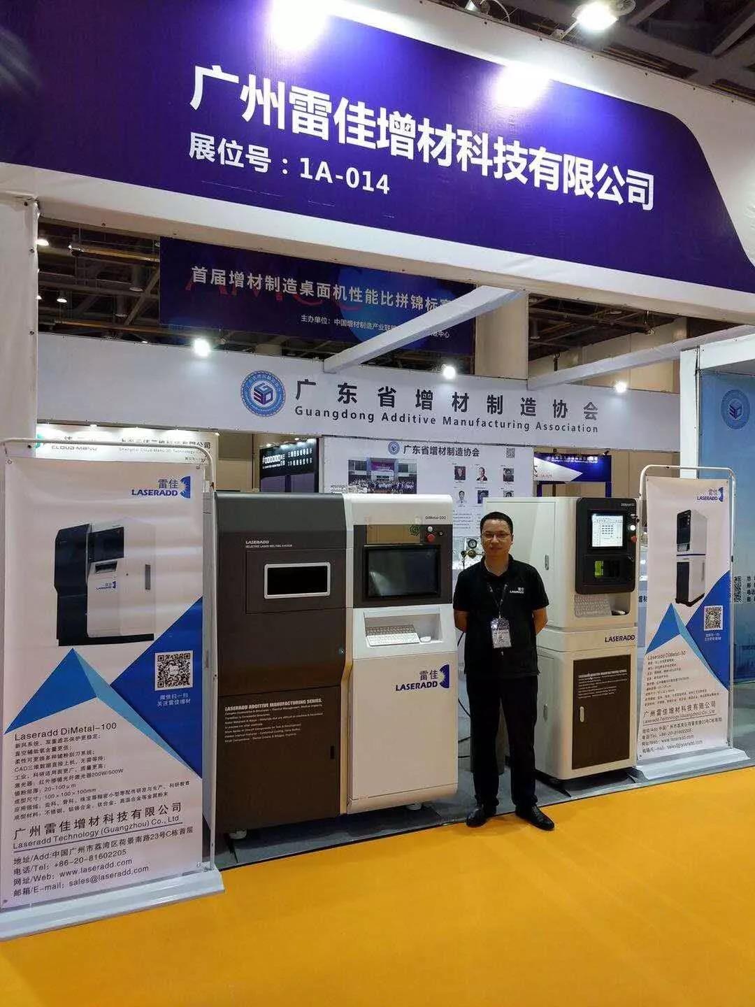 2018年會展雷佳增材銷售部經理謝卓與設備合影