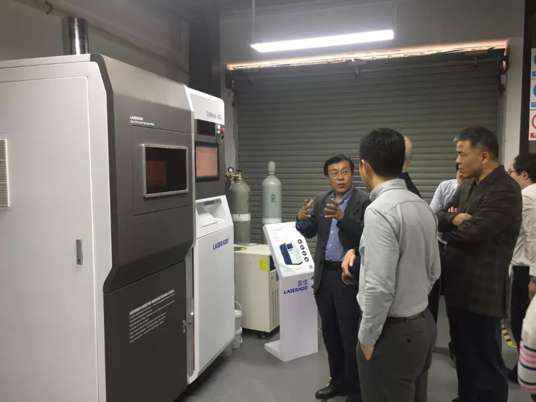 雷佳增材公司董事宋長輝先生(左三)與原航空航天工業部部長林宗棠(左四)一行合影