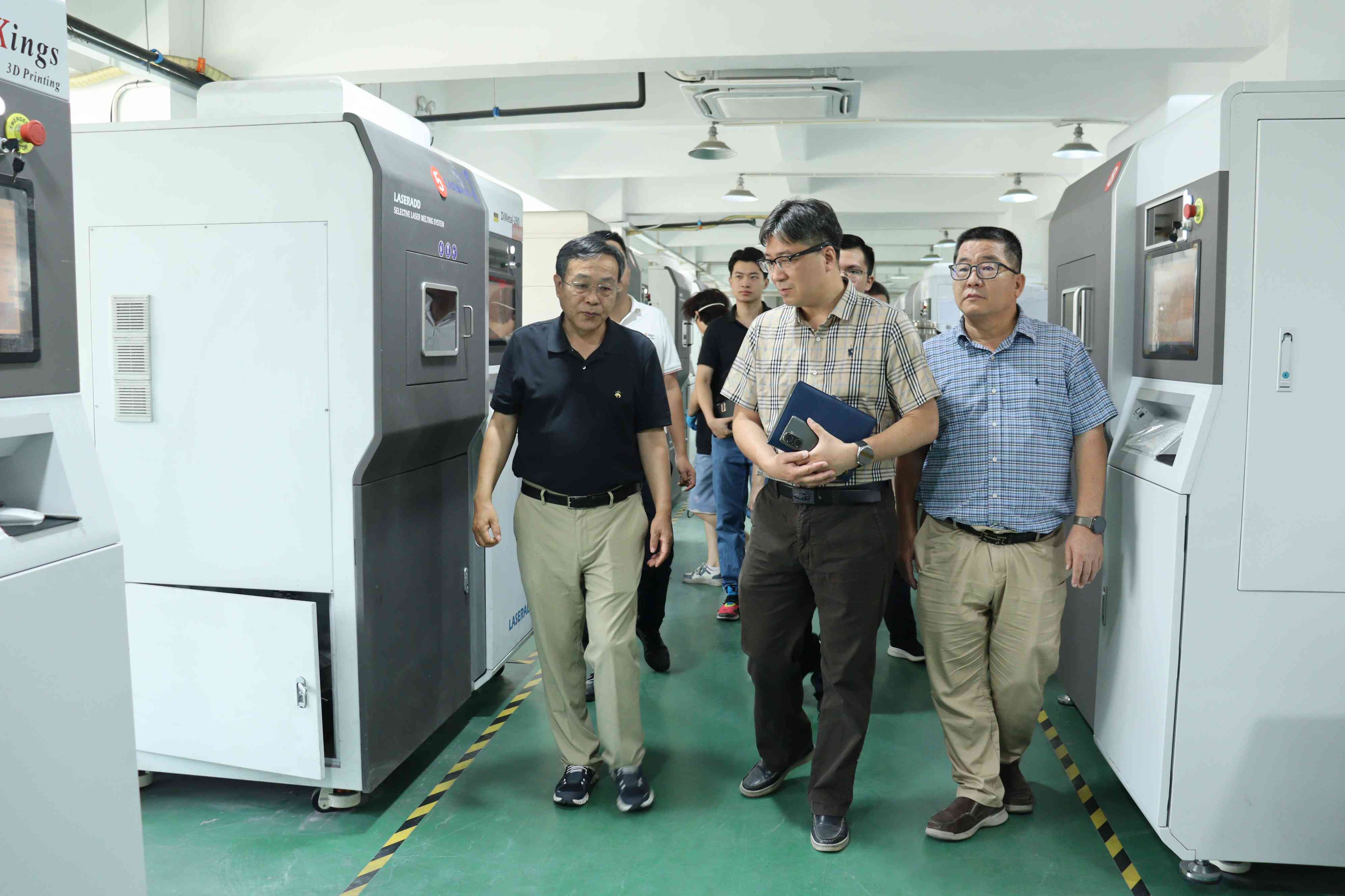 首先,各位領導在楊教授的指引下參觀了雷佳金屬3D打印機和增減材復合設備生產車間,以及3D打印服務中心。他們在參觀中不僅了解了3D打印機的整個生產過程,還詳細了解了雷佳在此領域的研發成果和應用案例。對雷佳企業在3D打印領域的技術實力和創新能力給予了高度評價。