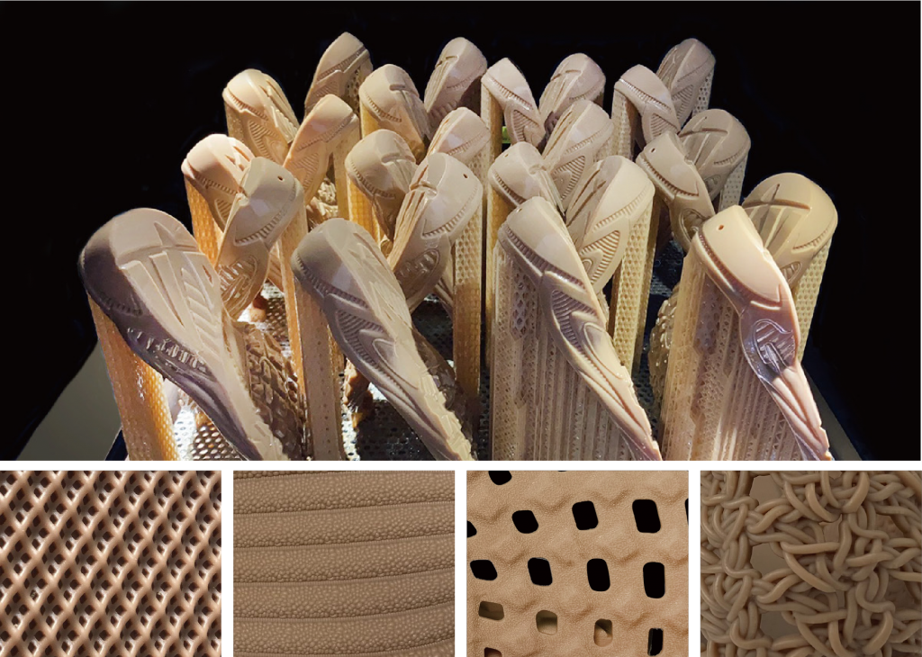 (2) 看板鞋模:利用SLA工藝實現360°無死角打印,制作的鞋模紋路清晰,棱角尖銳,耗材少、耗時短。確認樣板后,一次成型,無需再做修改,可快速確認外觀和結構,檢驗設計成果。
