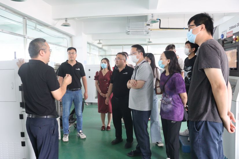 參觀完增減材設備后,代表團前往參觀雷佳SLM小型設備生產組裝車間以及3D打印加工服務部,了解了多款雷佳先進的主營設備,比如超精細SLM成形設備DiMetal-50,光斑可達20μm;國內獨創無需保護氣體進行金屬3D打印成型設備DiMetal-50E;超精細鞋模行業專用工業金屬3D打印設備DiMetal-450E等等先進設備。